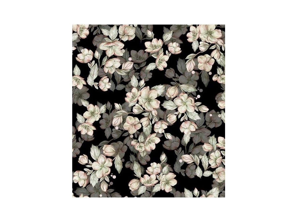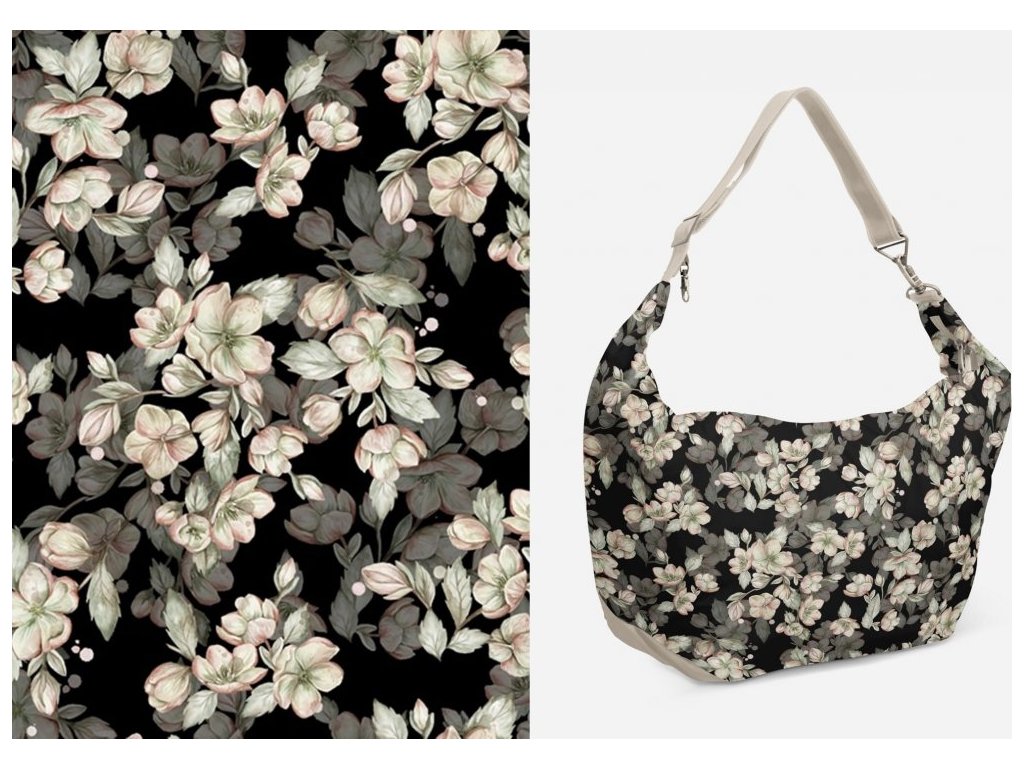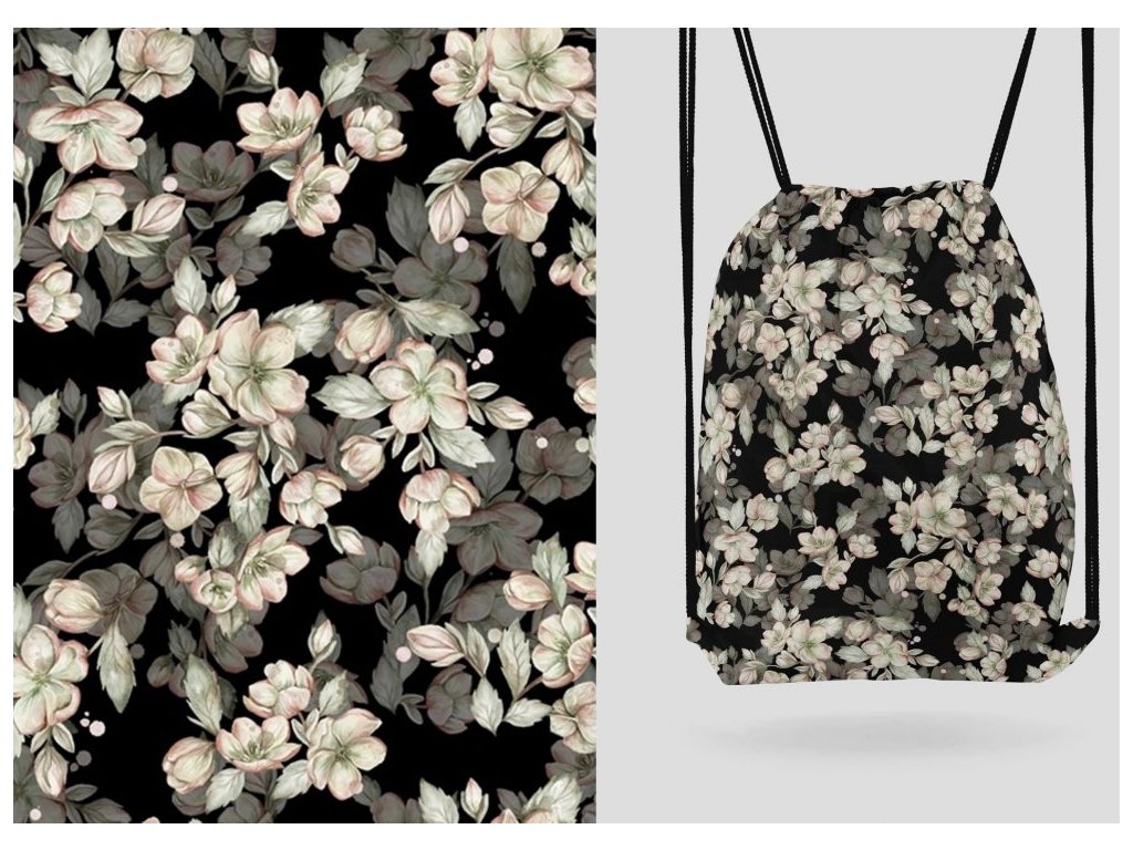 Jarní květy na černé - NEPROMOKAVÝ POLYESTER