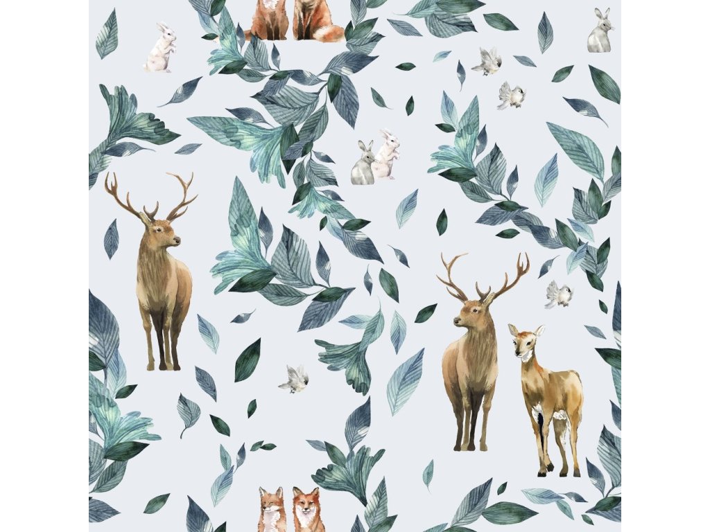 Lesní zvířátka na světle šedé - NEPROMOKAVÝ POLYESTER (poslední 0,55m)