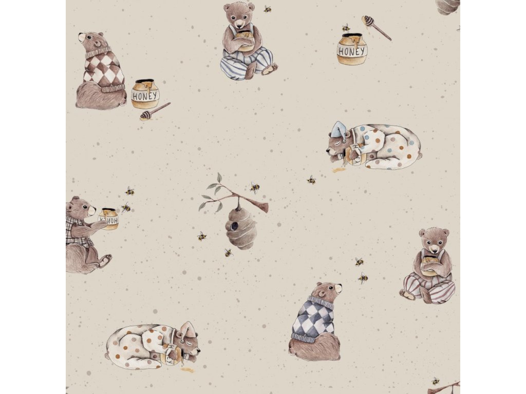 Mlsní medvědi na béžové - NEPROMOKAVÝ POLYESTER/KOČÁRKOVINA