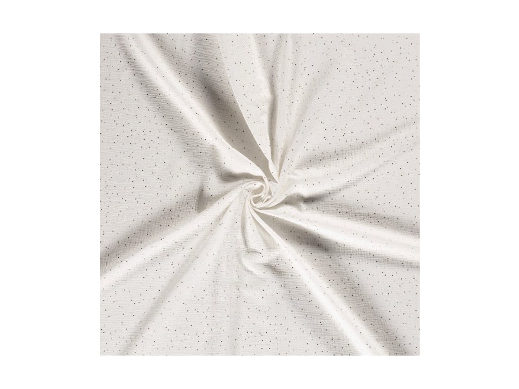 Tato velmi jemná a moderní látka je vhodná především na šití dekorací, polštářků, baldachýnů aj . Jedná se o velmi kvalitní mušelín s aplikací zlatých teček. Látka je samozřejmě opatřena certifikátem nezávadnosti Eko-Tex Standard 100 I.třídy a je tak vhodná i pro kojence a batolata. Čištění a údržba: praní max na 30° nesušit v sušičce nežehlit