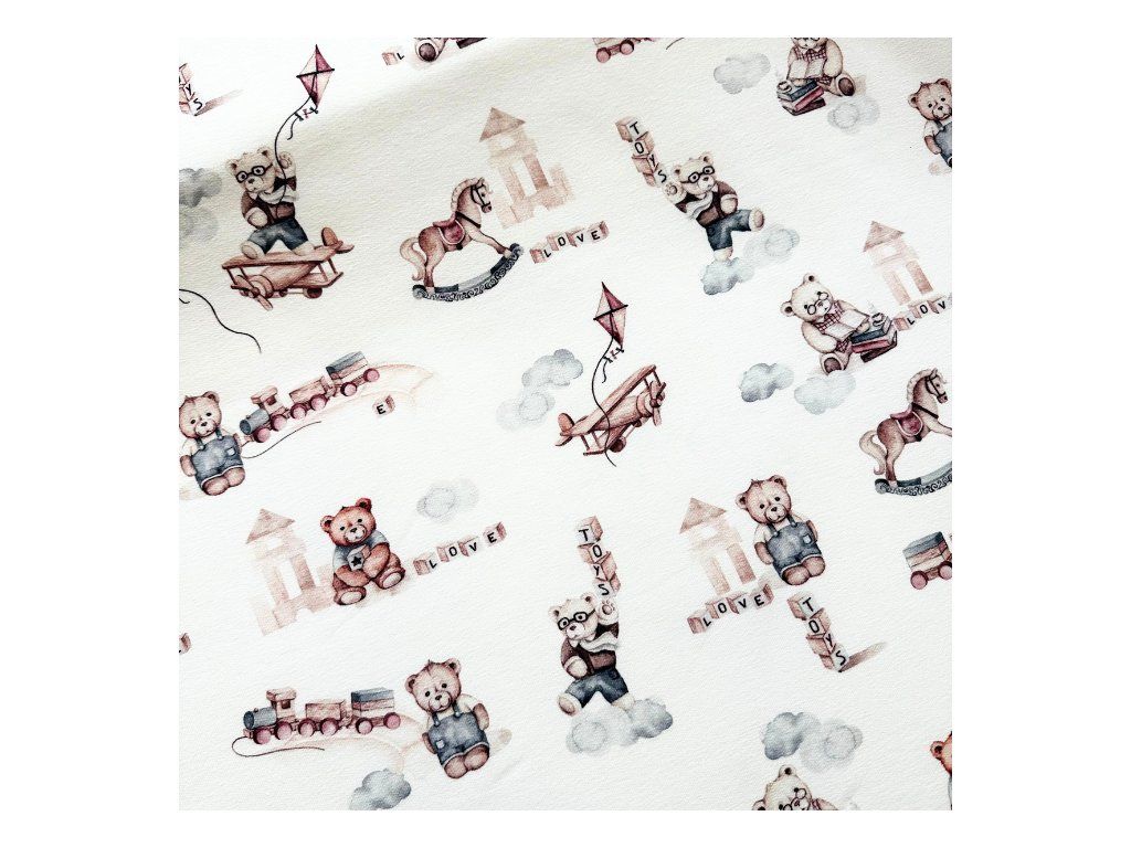Teplákovina s potiskem Medvídci a hračky – prémiová kvalita pro dětské oblečení