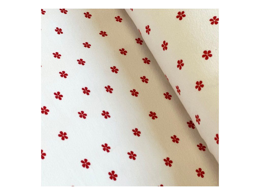 Bavlněný úplet červené minikytičky – 95% bavlna, 5% elastan | šíře 150 cm