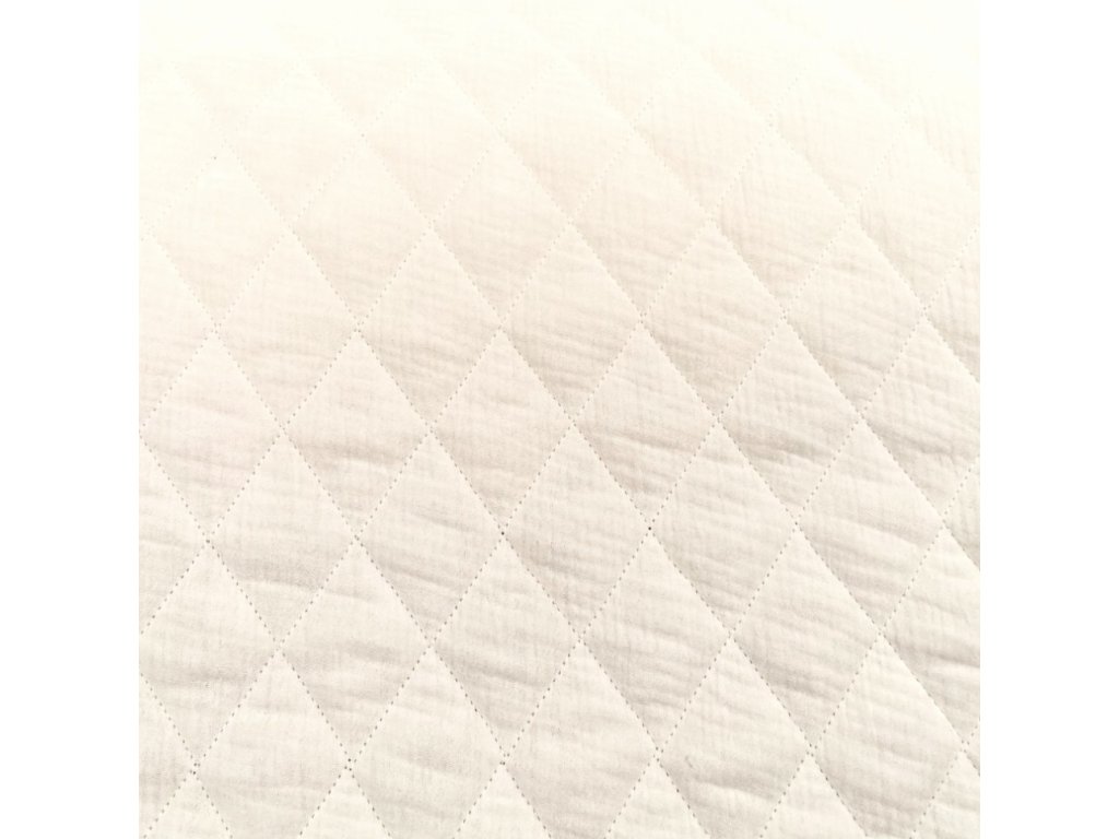 Tento příjemný mušelínový prošev pastelové barvy s vatelínem má mnoho využití. Je vhodný na šití mantinelů do postýlky, dětských hracích podložek, hnízdeček aj. Bavlněná látka je opatřena certifikátem Oeko-tex Standard I.třídy. Čištění a údržba: praní na 30° nesušit v sušičce nežehlit