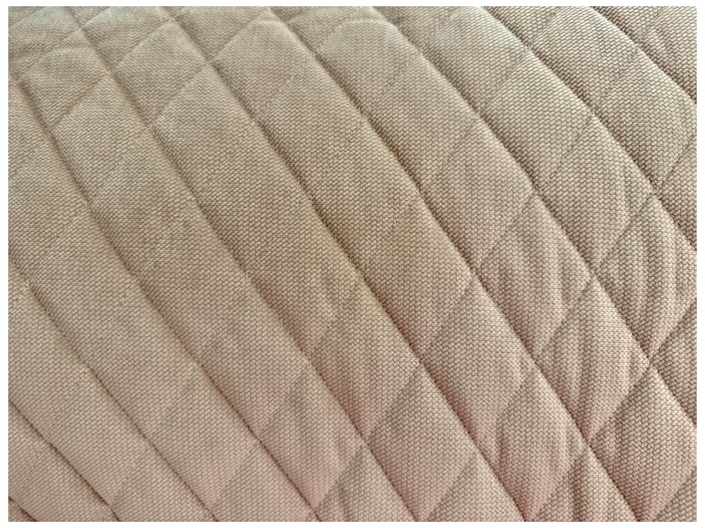 Tato překrásná tkanina, která je prošitá do stylových srdcí má širokou škálu využití nejen pro děti. Mohou se z ní šít hnízdečka, mantinely do postýlky, deky aj. Díky svému krásnému zbarvení a jemnému lesku na světle působí velmi luxusně. Dá se krásně kombinovat s hladkým sametem se stejnou strukturou, ale i s tištěnou bavlnou. Jedná se o velmi kvalitní materiál vhodný samozřejmě pro děti. Nezávadnost textilie výrobce garantuje certifikátem Öko-Tex Standard100. Čištění a údržba: praní na 30° nesušit v sušičce nežehlit