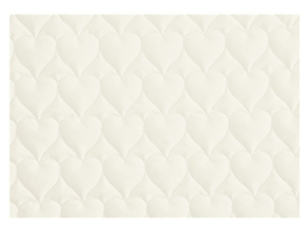 Tato překrásná tkanina, která je prošitá do stylových srdcí má širokou škálu využití nejen pro děti. Mohou se z ní šít hnízdečka, mantinely do postýlky, deky aj. Díky svému krásnému zbarvení a jemnému lesku na světle působí velmi luxusně. Dá se krásně kombinovat s hladkým sametem se stejnou strukturou, ale i s tištěnou bavlnou. Jedná se o velmi kvalitní materiál vhodný samozřejmě pro děti. Nezávadnost textilie výrobce garantuje certifikátem Öko-Tex Standard100. Čištění a údržba: praní na 30° nesušit v sušičce nežehlit