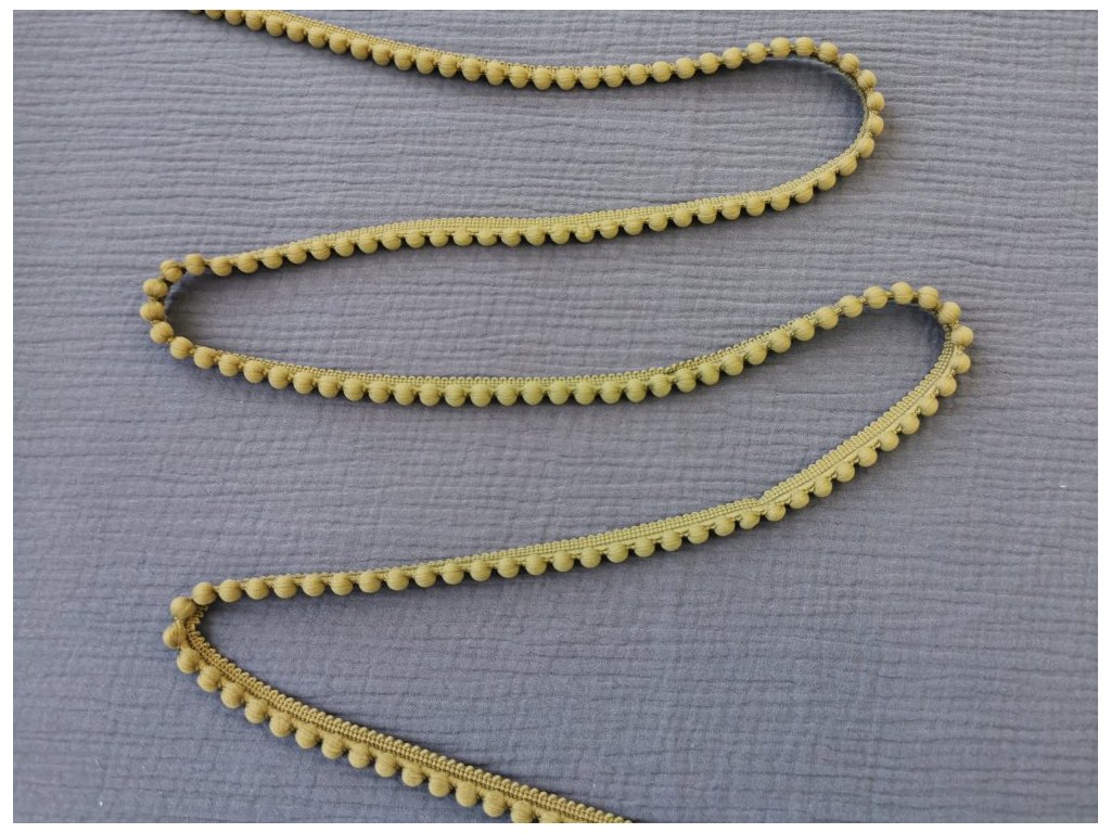 Veľmi kvalitný lemovací lem s brmbolcami. Jedná sa o veľmi štýlové dozdobenie napr. vankúšikov, hracích diek, teepee a pod.Dodatočné parametre