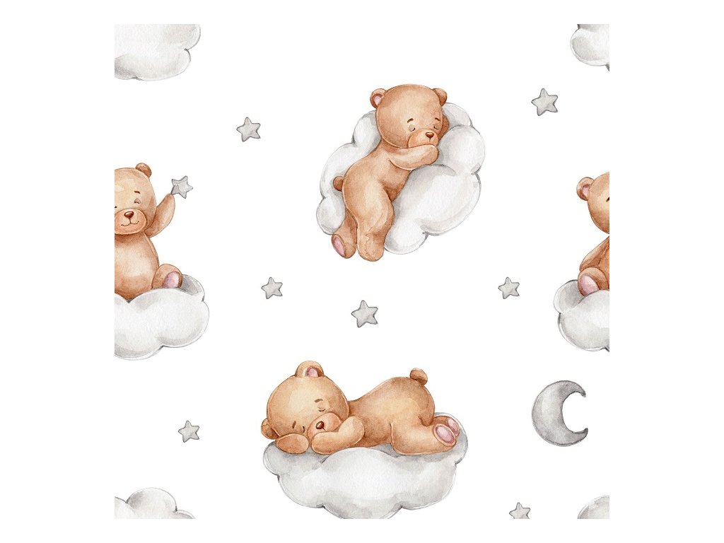 Tištěný mušelín - spící medvídci