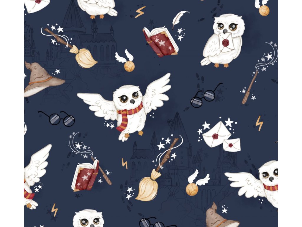 Škola magie na tmavě modré - NEPROMOKAVÝ POLYESTER/KOČÁRKOVINA