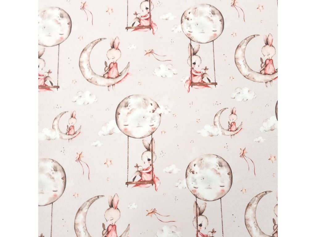 Zajíček a měsíc na béžové ledové - NEPROMOKAVÝ POLYESTER/KOČÁRKOVINA